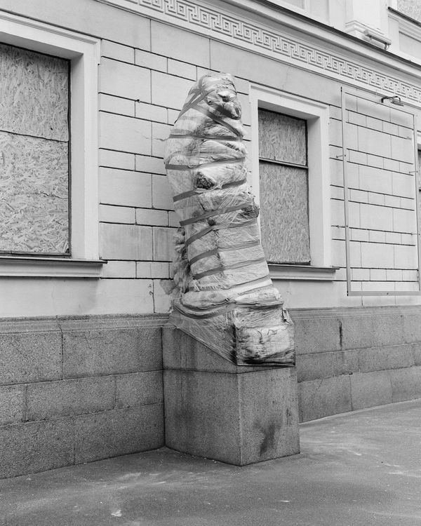 This work is hope in the conditions of total uncertainty in wartime. Trying to hide the pain, fear, and hate, like hiding monuments behind sandbags, or covering broken windows with boards.