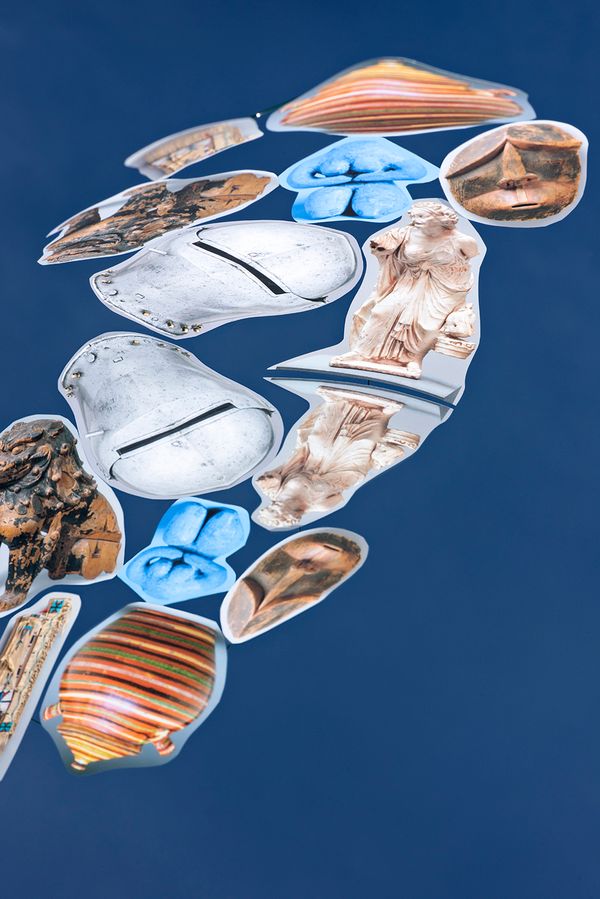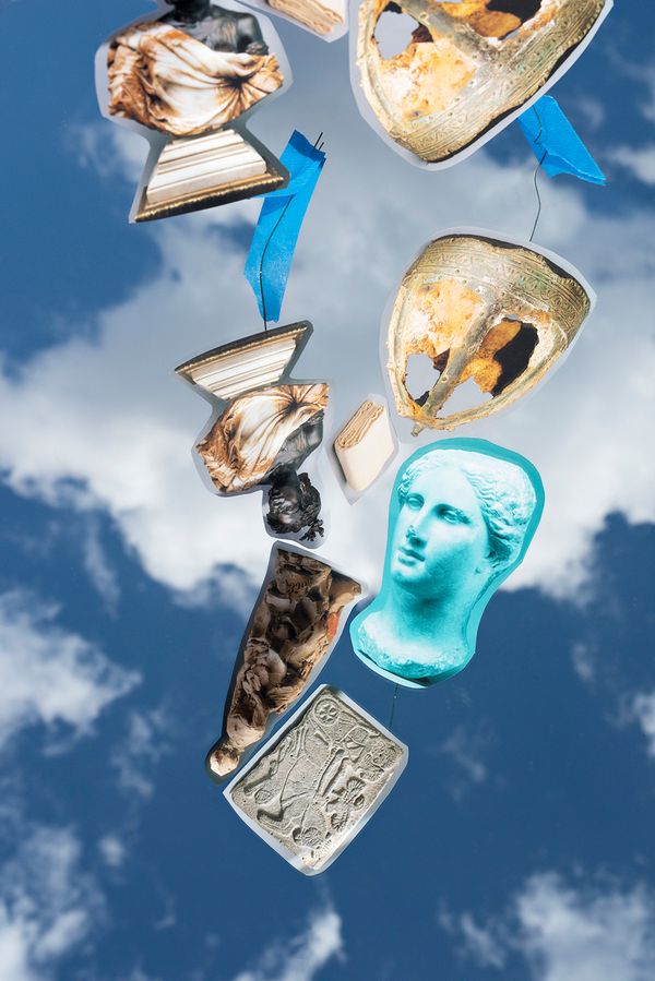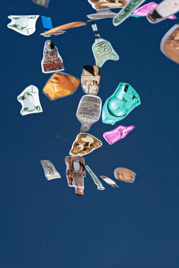 That’s where “If Not Here, Then Where” begins. I scrape the database of 406,000 public domain images, a filter the search engine offers, selecting and printing only artifacts that intrigue me. My personal preferences on composition, color, and aesthetics are what drives what’s printed and what’s left behind. The artifacts cluster together and form delicate mobiles that exist again in tangible form in a world that I can touch and engage with, but they are not what they once were. They’re constructions; fragile and easily disturbed. The artifacts are forever altered: flattened, downsampled, and all relative in size to one another. They’re reliant on the quality of their documentation to survive in their new bodies. Sometimes names, histories, and provenances have been reduced for ease. But what they lack in context and historical grounding they are charged by the newness of proximity to one another.
