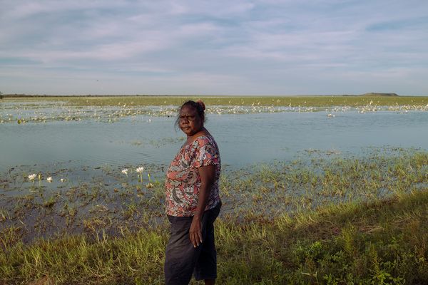 Nyikina Elder Linda Nardea, and her son Kimberley Watson speak of how their people read Country like a book, and since colonisation they’ve witnessed extractive industries slowly rewrite the ancient stories of their land and waters. These stories have been shared through Country by all native species, fish and flowers, animals and plants, living beings that are now sick.