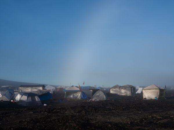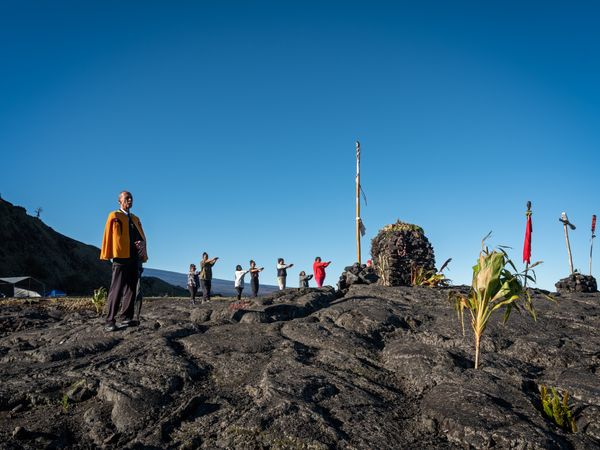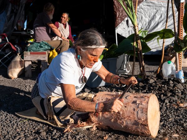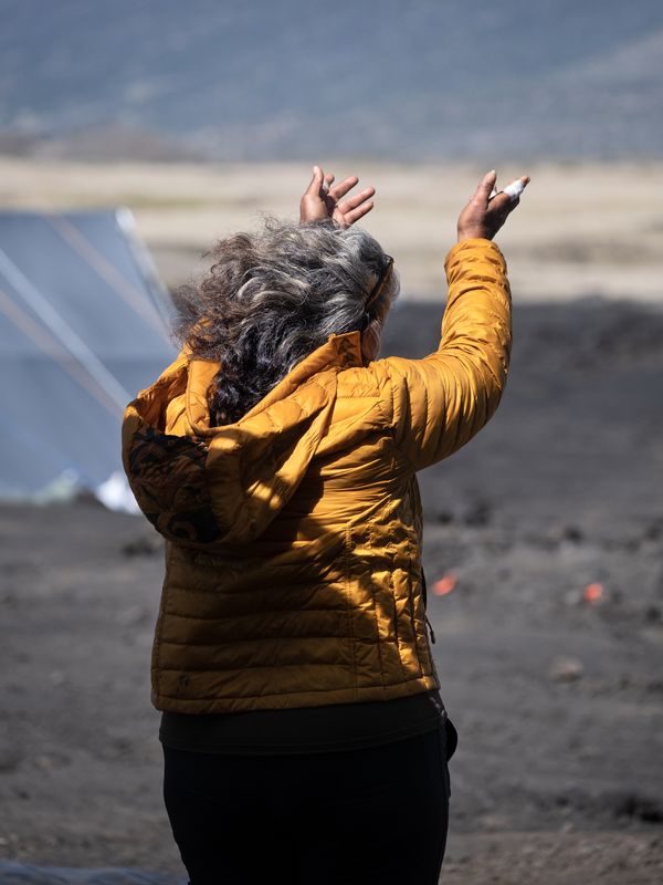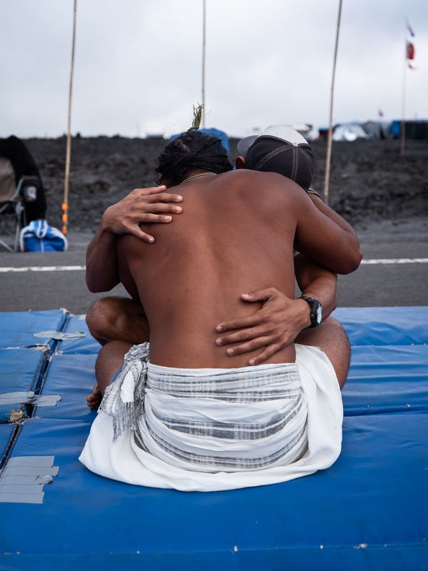 I went to Mauna Kea intuitively and plan to return once safe travel is possible again. My work often deals with spirituality and human connection to the natural world. As the daughter of a conservation lawyer, efforts to protect land are close to my heart. The kia’i are like family to me now; their determination, resilience, and resolve to protect the sacred has inspired me profoundly. Everyday moments, seasonal ceremonies, and the raw beauty of the land come together in the photographs, offering a glimpse into life in this temporary village, in the realm of the gods.