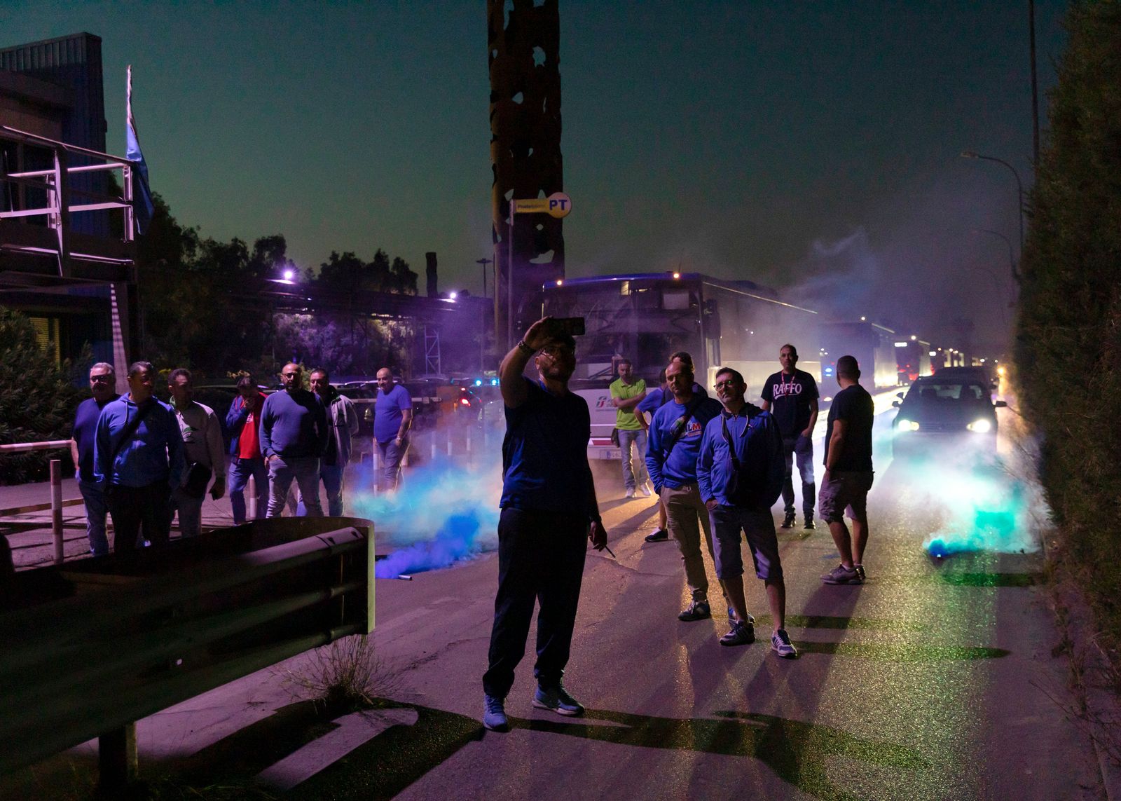 Steelworkers block the access roads to ILVA in the early morning and call for a strike. They are complaining about the persistently poor working conditions, the plant‘s dilapidated infrastructure and the poor safety situation at their workplaces. Taranto, September 2023