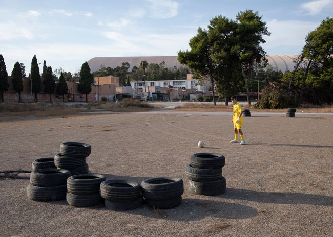 Antonio (15) practices his goal kick in front of the largest steelwork in Europe, the so-called ILVA in the South Italian city of Taranto. The plant is in a dilapidated state and, according to various studies, is responsible for the emission-related cancer deaths of thousands of citizens. Taranto, September 2023