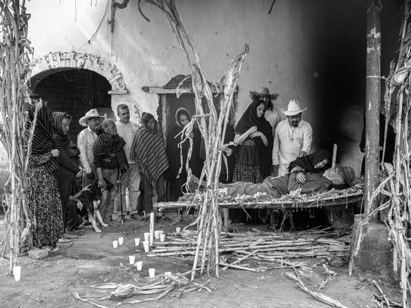 The last meeting of the innermost family for the deceased to embark thereafter on the journey to ultimate solitude. There is a solemn respect, silence and tears and an occasional hidden and fleeting laugh.