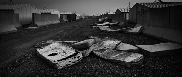 The formal choice of black-and-white imagery engages with the historical authority traditionally attributed to photojournalism, while cinematic formats and dramatic light and shadow converge in ambiguous sequences. The progression of images does not aim to present facts or assert truths; instead, it casts doubt on our interpretations, suggests a plurality of meanings, and seeks to move beyond the one-dimensional framing to which we are accustomed. These fragments of places and events, without a linear narrative, encourage the viewer to search for clues and allow for multiple interpretations.