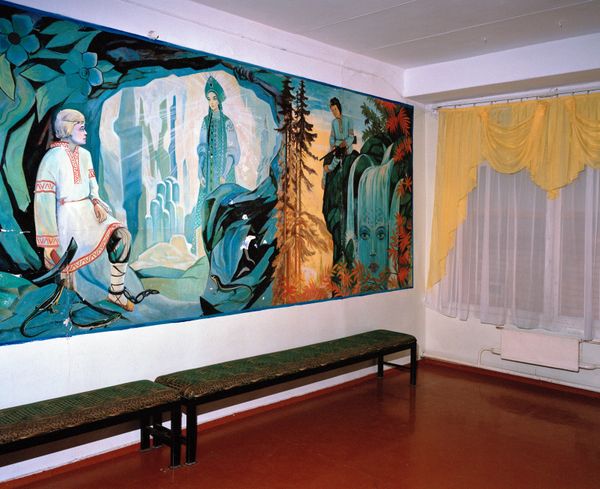 Mailuu-Suu, a once secret ‘atomgrad’ municipality code named ‘Mailbox 200’, located in today’s southern Kyrgyzstan, was a central mining hub part of the Soviet atomic programme where uranium ore mining took place between 1946 and 1968. Consequently, a total of 23 toxic tailings were hastily disposed, some located in areas vulnerable to erosion, near the river as well as located in areas of unstable tectonic activity, threatening both the community today and the populous Ferghana valley downriver. To quote Barry Commoner, founder of the modern environmental movement and cellular biologist, “New technology was brought into use before the ultimate hazards were known. We have been quick to reap the benefits and slow to comprehend the costs.” A visual dialogue between fact and fiction, Jove’s Palace examines how the fortuitous nature of political geography defined by the Cold War impacts the youth’s current relationship to the circumambient anthropomorphic landscape. By the same token, the atomic age has epitomised technology’s function within its hierarchy, as its international militarisation has culminated in one of civilisation’s greatest existential threats. Moreover, uranium extracted from Mailuu-Suu was reportedly utilised for the creation of the first atomic bomb for the Soviet nuclear program. In turn, its inaugural geographical manifestation recalls Homer’s ‘two urns’ in Jove’s palace containing good and evil gifts” from the Iliad; a duality equally contingent to atomic energy as to Pandora’s Box.