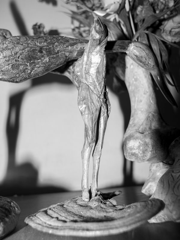 Pista, my grandfather is the protagonist, the spirit of the photographs, the photo series is about him. About him who caused me the most pain, and not only to me, but to the people I love the most in this world. Pista was born in Hungary in 1943, on a train. His greatest passions were football and alcohol. He lost his father when he was a baby, and then his mother when he was 18 years old. He was an orphan, a lost soul who suffered a lot and because of whom many people suffered. Between 2005 and 2010, alongside football matches and alcohol, he retreated to a hut and created sculptures in a self-taught manner. Their apartment is full of these wooden sculptures and monsters. Nobody was ever interested in them, for a very long time they were the most natural things on top of the cupboard.