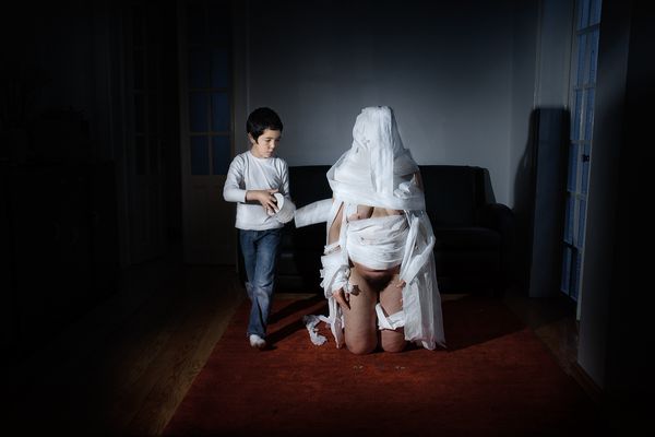 Kinderwunsch has been developed over seven years and did grow increasingly more complex. We come up with scenarios in which to carry out actions. Some times they're my children's ideas, some times they're images that come out of my fantasies. The photograph depends on the action, and it's always a discovery.