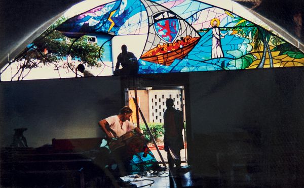 Kitengela is a village crafted from recycled glass, embodying the vision of a utopia where art and nature intertwine. Simonet captures the vibrant yet fragmented narrative of this place, revealing its artistic ambitions and its sociocultural landscape.