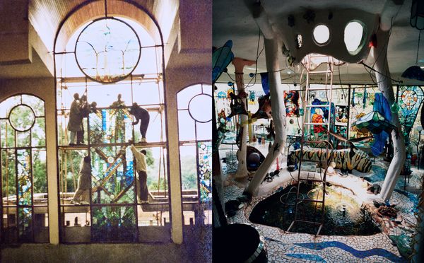 How may one begin to tell the story of Kitengela, a five-acre labyrinthian home overlooking the Kiserian River, built out of recycled glass and aluminum cans by German artist Nani Croze in the early 1980s and now ran as a glass-blowing factory, business and touristic venue by Croze’s son, Anselm? How may we look into the realities of white settlement, circulation of knowledge, division of labor, stratification of power and family feuds – retrospectively and from afar, with neither naivety nor caricature?