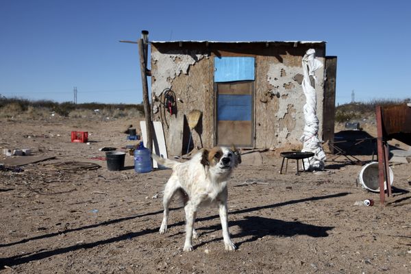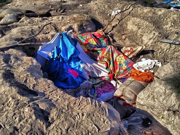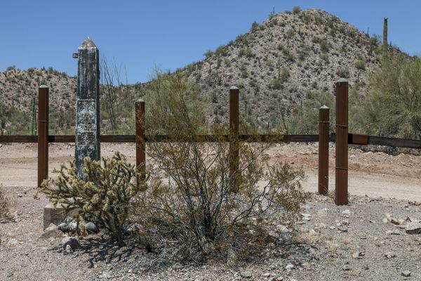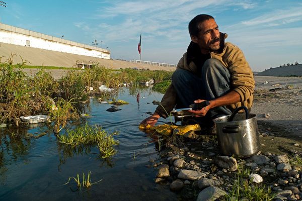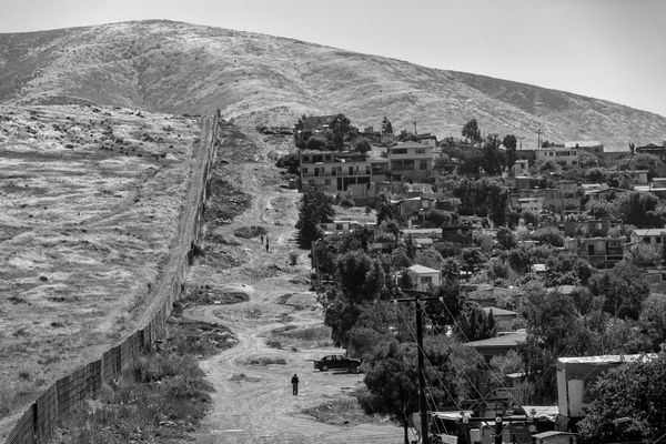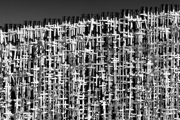Las fotografías de Francisco Mata Rosas que conforman esta serie surgen directamente de ese mundo de apariencias arqueadas, de identidades torcidas y atravesadas por la larga y sinuosa cicatriz de la frontera. Desde luego, se trata de imágenes que trascienden el mero afán testimonial: no estamos ante el registro prosaico de una realidad que ya sabemos tormentosa, sino ante una sensibilidad capaz de construir la metonimia exacta del desamparo y la violencia fronterizos a través de los vestigios que dejan los migrantes en su camino al norte, o de fijar el abandono de las zonas carcomidas por el narco a través de las ruinas y las tumbas que erizan el paisaje.