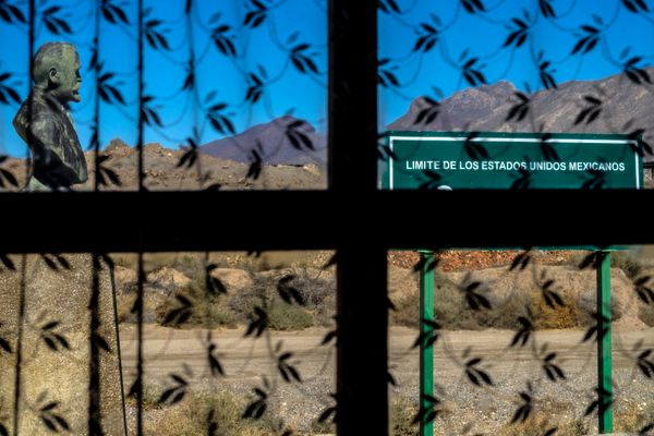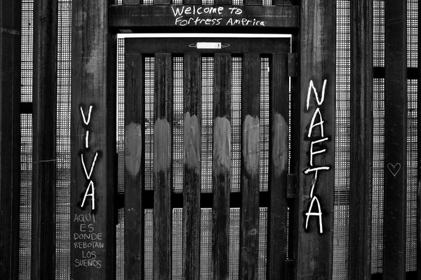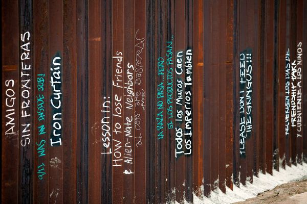 “Aquí es donde rebotan los sueños”, se lee en una pinta en el límite último de México, esa línea que resguarda el norte mítico, el polo magnético hacia el cual se orienta la oxidada aguja de las aspiraciones subcontinentales. Rebomtan los sueños multiplicándose en imágenes que deforman el rostro de quien las sueña, como en un truco de feria: la identidad alterada y repetida por un espejo convexo.