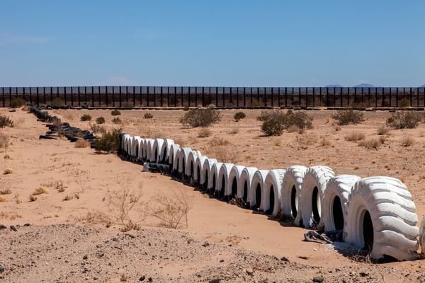 La Línea, de Francisco Mata Rosas“Aquí es donde rebotan los sueños”, se lee en una pinta en el límite último de México, esa línea que resguarda el norte mítico, el polo magnético hacia el cual se orienta la oxidada aguja de las aspiraciones subcontinentales. Rebomtan los sueños multiplicándose en