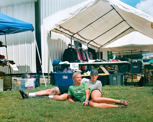 Yet amidst the spectacle, moments of intimacy emerged. A mother and her three daughters stood hand in hand by a gas pump, their quiet unity contrasting with the noise of the sale. A young couple lounged in the grass, their ease with each other making the chaos around them seem distant. These portraits are reminders that beneath the grand narratives of politics and commerce, people are still finding ways to hold on to each other, to carve out spaces of connection in a country constantly shifting beneath their feet.