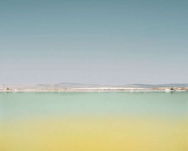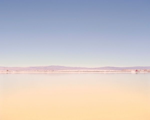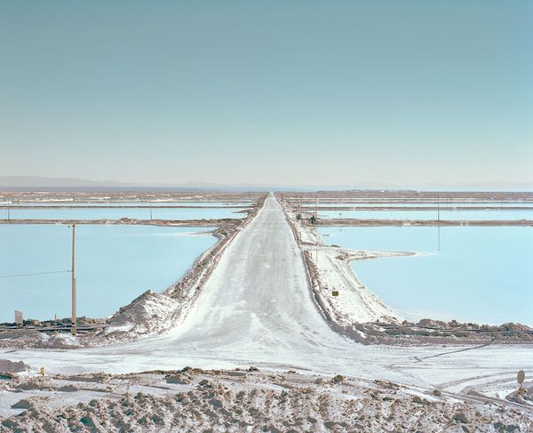 That process is evident in landscapes that show the flatness of the evaporation ponds, the crust-like surface of the earth, the idea of isolation and fragility even in the gullies and villages that dot the region. As in her previous work in China, Universal Experience, Hyland captures a world that seems empty and desolate. Embedded in these images are the attempts of man to tame the land, to control it. The dusty roads, the 2 square miles of neatly bordered pools put the land into a grid. There is the idea that this is a desolate place that has been made tidy by mining.