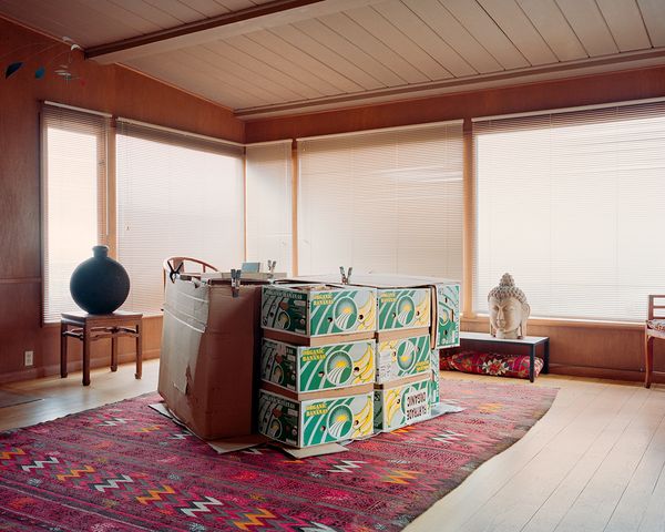 By an act of artistic intervention the worlds of the rich and poor are brought together in Nolle’s photographs, the temporary shelter of the homeless constructed within the solid walls of the wealthy living room. In this way, the project asks us to consider social questions and connections through a purely material perspective, one not based on human interaction.