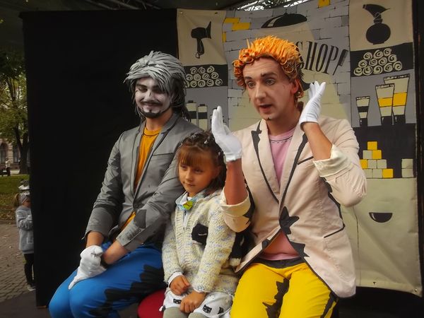 My authors photos of living sculptures show on the central part of Ivano - Frankivsk City , Ukraine .