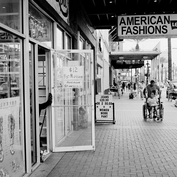 This ongoing series of photographs called Low Hustle Hot Center: Canal Street in Downtown New Orleans, incorporates a wide array of photographic styles: from portraits to streetscapes to architectural studies, in both minute details and sweeping vistas. The black and white film medium brings the work in conversation with the rich, historical imaging of New Orleans. As a series the images strive to describe not just the physicality of the urban environment and its inhabitants (however fleeting), but also the complex psychological tone of the area, too. Of specific interest is how the social fabrics and economic dynamics along Canal Street have evolved in its present moment to become one of the South's busiest and most diverse, urban arenas.