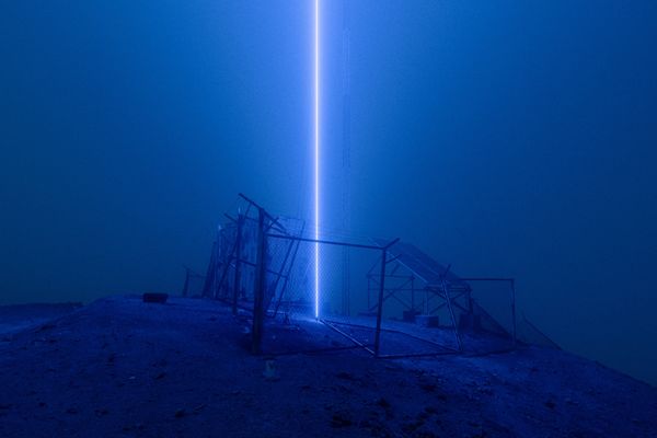 This series of images emerges from experiments with laser light at the CDA of the Pontifical Catholic University of Chile, located in Alto Patache. Capturing a landscape where the scientific intertwines with the natural, elements such as weather stations, fog collectors, and ruins of structures devastated by mudflows combine with light to visually narrate the story of water in this arid environment. The images are generated by a device that captures solar light during the day using solar panels and batteries, and projects it at night using a laser designed by the artist Mauricio Lacrampette. This work is part of the research by the KMNCHK _Scan Lab collective, focused on documenting the interaction between fog and the landscape.