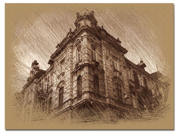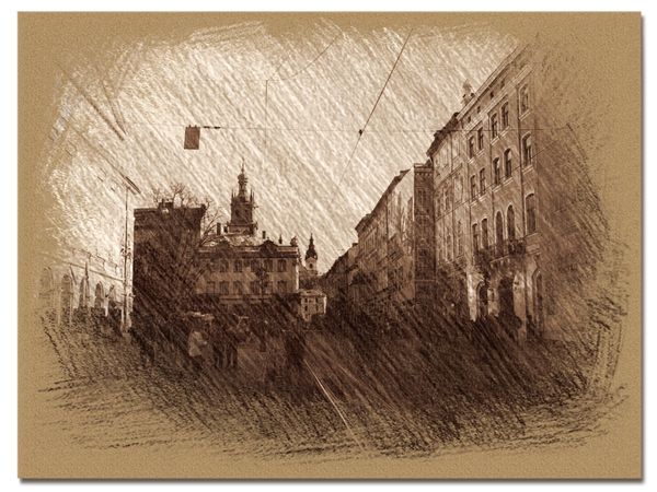 Lviv City in trois coleur drawing 38