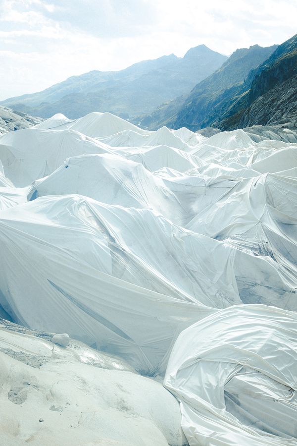 The photographs of this series, taken across various locations in the Alps, not only showcase the region’s majestic landscapes but also symbolize the irreversible changes our planet is undergoing. The glaciers, protected by blankets, yet still melting, mirror the nostalgic desire to preserve a past that is both idealized and impossible to return to.