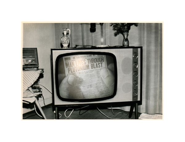 The imaginary vernacular images in the series, “Man Lives Through Plutonium Blast”, appropriate the bits and pieces of discarded analog photographs for material, while conceptually focusing scrutiny on the idea that so many events in our lives seem to happen just beyond our ability to comprehend.