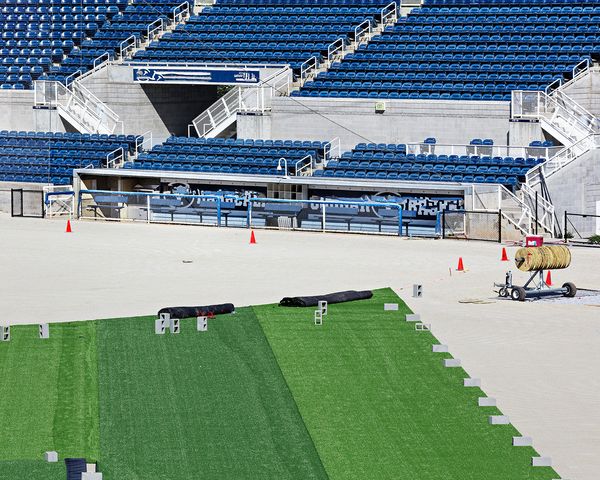 The series began with a collection of inadvertently painted stones gathered from various construction sites and subsequently organized by color. Used as a way of indicating boundaries and providing instructions to workers, color-coded paints are applied throughout the worksite and often spill over onto the surrounding rocks and landscape. In the wake of progress these stones remain as emblems of the organizational systems that displaced them. This expanded to photographing a wide range of marks used in the construction process and broader evidence of alterations. I also began noticeably editing and digitally modifying select images in order to add another plainly visible layer of reorganization.