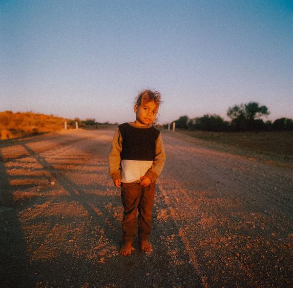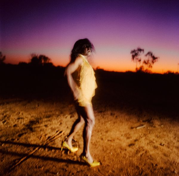 Marungka Tjalatjunu is work documenting Derik Lynch's road trip back to Country for spiritual healing, as memories from his childhood return. A journey from the oppression of white city life in Adelaide, back home to his remote Anangu Community (Aputula) to perform the dance captured in this image.