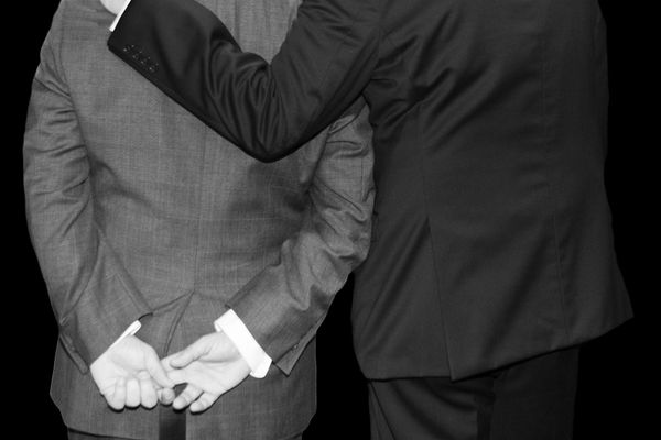 THE DANCE: Outside the home, the man in the grey suit relates to other members of his species. These encounters function as a social ritual where power, recognition, and hierarchy are activated. Like a precise choreography, gestures and distances are carefully coded. Each movement reinforces and acknowledges the hierarchy of command.
