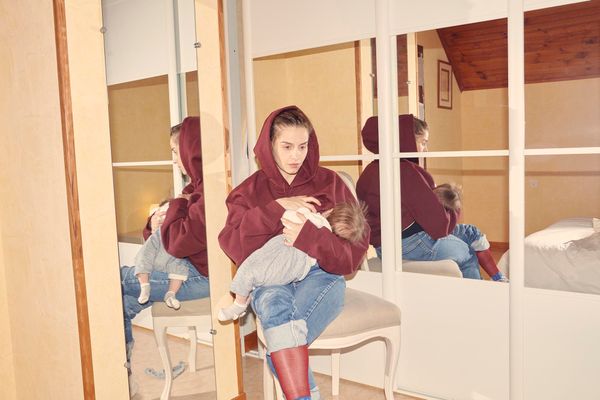 Milky Way is a series of photos of my wife and our child during breastfeeding. The esthetic aspect is determined by the nurture which imposes its geometry on bodies and on space they occupy. These images contain familiar echoes of classic icons but adorn themselves with modern elements. From these everyday moments, seized with harshness, without bitterness, emerges the force of exchanges between two beings and the milk becomes, as in the Greek legend of the Milky Way, the vector of a world under construction.