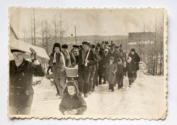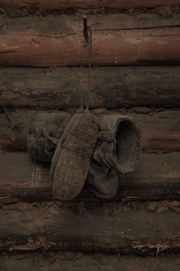 This project, my and my father's living of the two days during which we traveled back in time. I recorded his memories on a tape recorder and later transcribed everything and asked him to write down some scraps with his hand. Together we traveled many kilometers along the taiga winter road and the same number of kilometers along the frozen Mokla River. Later, looking at the photos, listening to the recordings I constructed images using objects from that era, trying to fill in the gaps of memory. It was as if I wanted to relive that moment myself, to understand what made my grandfather do that.