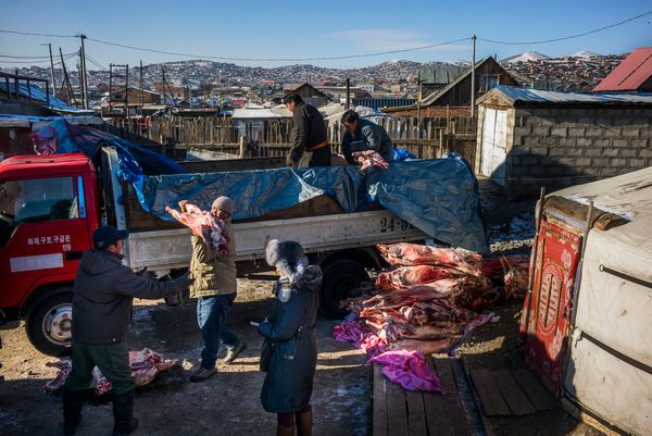 As a result of the boom in natural resources, a new class of super-rich has emerged, similar to the oligarchs in Russia, but with the significant difference that Mongolia’s super rich prefer to remain in the background. During the extremely harsh winter of 2010, nearly one-quarter of all farm animals died and the price of meat doubled. In the city, all prices are on the rise. The loss of green pastures as a result of the tough winters, coupled with the shortage of water caused by mining, have forced many nomads to migrate to the capital with two-thirds of the population living on the outskirts in massive yurt districts. Countless coal-burning stoves pollute the air, representing an enormous health hazard, and the gap between rich and poor is growing, the numbers of homeless people increasing, and unemployment is high.