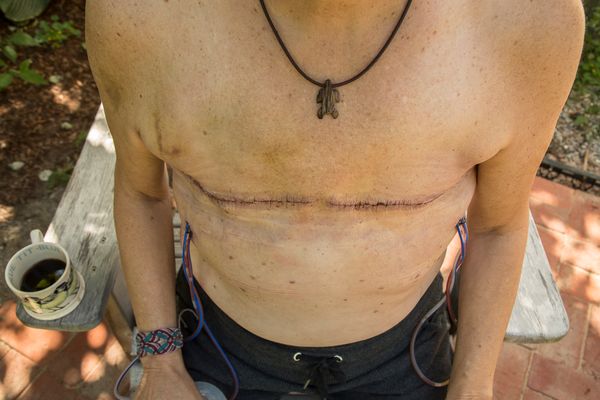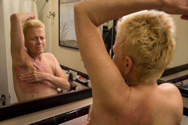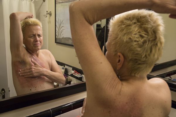 This project began as an offer to memorialize a friend’s (Mary) breasts before a radical mastectomy to confront Inflammatory Breast Cancer. We recently had reconnected through a friend who subsequently died from ovarian cancer. This morphed into a documentation of Mary’s journey. Photos were taken at her home, in Winooski, Vermont and at Dana Farber Cancer Center Boston, Massachussets.