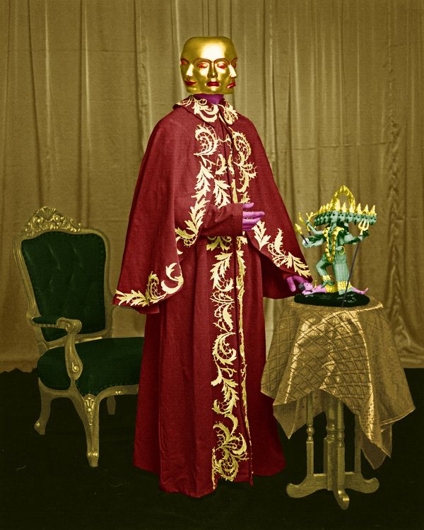 The visual language uses in the series Mt. Meru springs from fetish fantasies, Hindu religious allegories and classic Thai imagery. With these referrals he comments on the sacred status of the monarchy in his homeland. The artist grew up with the norm that, in order to be a good citizen of his country, the ideal role model was represented by that of the highest position on the wall: that of the king.