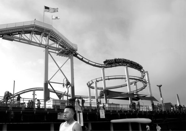 On the sand or in translucent water I explore the sociological dimension of each one's habits in terms of seaside getaway. I notice that each place reveals its sociology, whether in California, Deauville or Alexandria. The common thread is the shift of the urban societal habits of the earthlings in their activities in the natural environment. To capture photographically this normality disturbed by the regained freedom of the body facing the infinity of the sea at the very place where the earth stops.