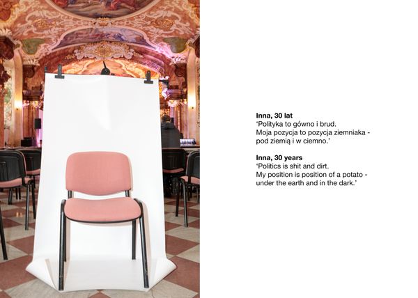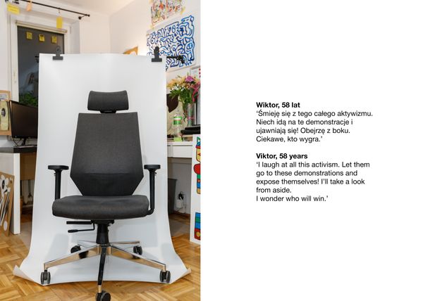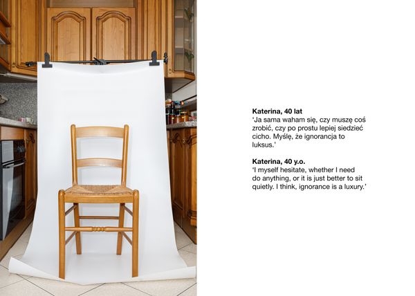 Though we can all participate in social life in different ways. Therefore in her project she is thinking about empathy as a necessary phenomenon for the development of communities and building of tolerance. By making visual performance, Katerina invites to symbolically sit on someone’s chair and to understand what guides a person in determining his/her position of civic behaviour.