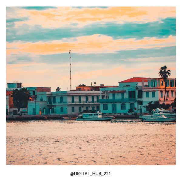 Dans la douceur d’un ciel pastel, les pirogues colorées avancent lentement sur une mer tranquille. Leurs teintes vives évoquent un héritage vivant, lié aux gestes quotidiens des pêcheurs et à la mémoire du littoral. Les bâtiments en bord de mer se dessinent en arrière-plan, leurs formes se mêlant aux reflets lumineux de l’eau. L’atmosphère, calme et contemplative, suggère un instant hors du temps. La scène révèle ainsi une harmonie naturelle entre l’homme, la ville et la mer, où chaque détail souligne une beauté discrète et intemporelle.
