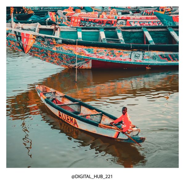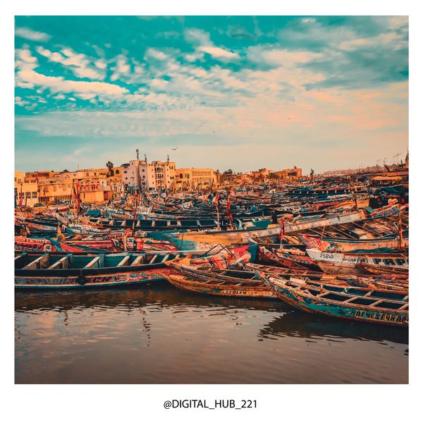 Sous un ciel pastel, des pirogues colorées glissent sur une eau paisible. Entre traditions de pêche et architecture côtière, la scène capture l’harmonie silencieuse entre l’homme, la mer et la ville, où chaque reflet raconte une beauté intemporelle.