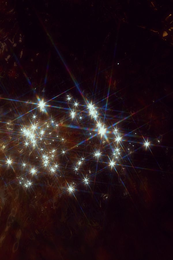 Dwelling amidst mercurial images of nature, ‘never tire of looking at the stars’ sees flesh and flora meld into one another - a porous boundary between the states of life and death, body and nature - a humming cyclical landscape. Water glows from both within and without; eyes are bright as spectral bodies, pupils shrinking aperture-like into black pinpoints. These living things invoke each other - one is not merely the reflection of the other; they are each other's emotionality: what is felt in the land, is felt in the body.