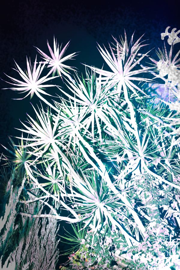 Nocturnal captures the activity of plantlife after dark, punctuated by imaging manipulation elements. Experimenting with light, color, selective inversions and other photographic processes to manipulate both visual and spatial perceptions, this project attempts to disrupt and propel the vision of nocturnal plantlife by divulging/exposing that which is hidden in darkness.