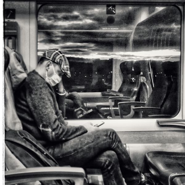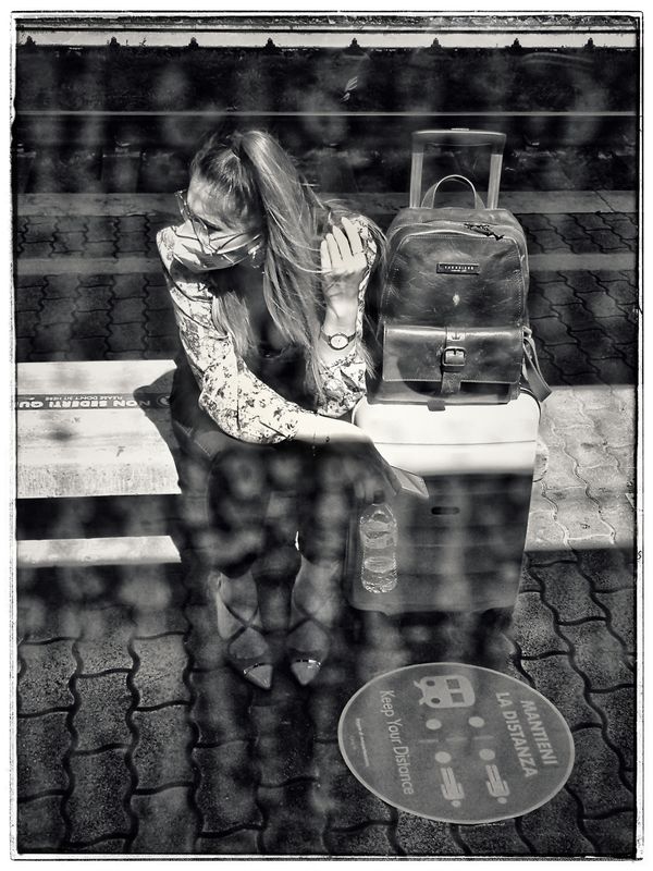 A travel diary I took during my back and forth trip from Orvieto to Roma on the regional train. Station's dystopic spaces, people, landscapes from the window, traces... The project starts in 2018 and continued during this Covid-19 times, when social distance is a must, masques, and fear of the others are the must. It is so weird to see how people changed their behaviors so fast and easily, accepting to consider anyone else a possible danger or, maybe, an enemy.