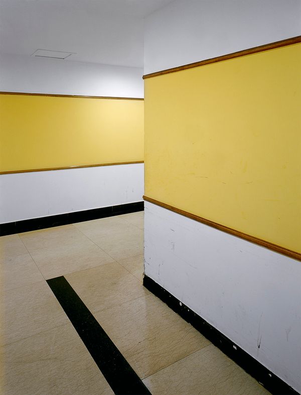 NOT AN EXIT is a collection of large format analog photographs that proposes a closer examination of the nondescript interiors that we routinely pass through; doorways and hallways, spaces intended for movement but here, somehow appear impenetrable. Irving transforms dead ends into studies on the architecture—spatial and psychological—of confinement, straddling the boundary of absurdist and unsettling. Both banal and bizarre, the Kafkaesque quirks and the illusionistic geometry of these locations draw the eye deep into the picture, only to be thwarted in its progress through space. Presented as close-to-life-size Lightjet prints, the scale and repetitive compositional elements of these images evoke a methodology of clinical examination and categorization of the liminal spaces we inhabit and yet often never truly see. We are going somewhere and yet — there seems to be no way out.
