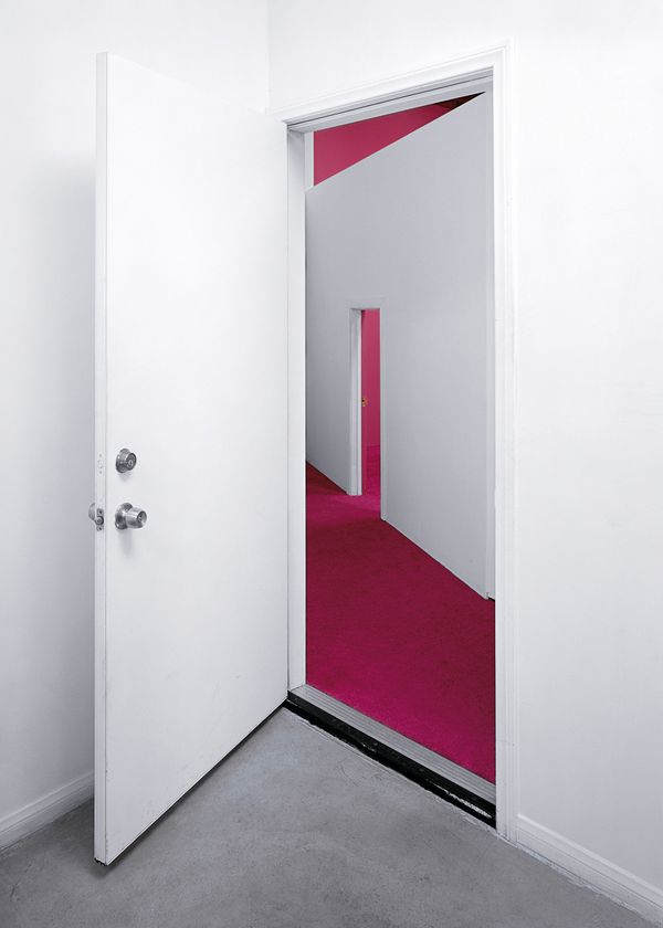 NOT AN EXIT is a collection of large format analog photographs that proposes a closer examination of the nondescript interiors that we routinely pass through; doorways and hallways, spaces intended for movement but here, somehow appear impenetrable.