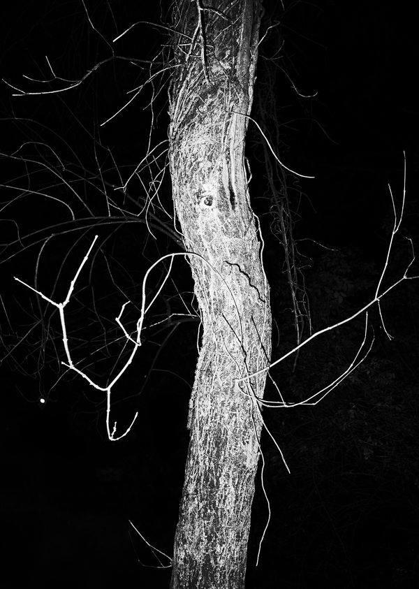 Starting from a theoretical dissertation that proposes a distinction of the night as something more than a natural cycle, and considering it as a configuration of space and time full of subjectivity, the photographic project Nouturnio presents a visual exploration of a dark and subjective nature manifested at dusk through forms that play with the abstraction and unrealization of the natural space. The project presents the concept of reminiscence as a fundamental aspect from which the nocturnal forms originate. Aristotle in his Treatise on the Soul speaks of memory as a faculty of the soul that preserves all that the being has known through the senses, and in this memory there would be a second operation in which the spirit, from a reflection, extracts from the thought a reproduction of the gaze of what has been known. In this way, at night, nature will unmask forms that take on meaning through the reminiscence itself that penetrates the viewer and proposes to him to reach to the memory of the figures that make up the night subjectively.
