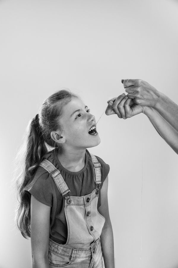 Exploring dental care and trauma, but also pleasure and emancipation, it transforms these themes into scenarios that are both playful and subtly provocative.