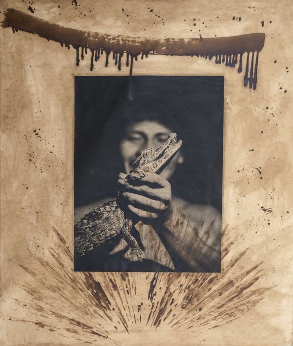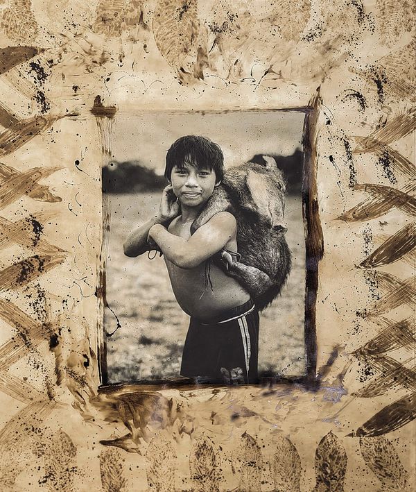 This photo essay seeks to create a representation of the impact of oil exploitation on indigenous communities in the Ecuadorian Amazon. The photos in the series are printed on cotton paper in large format and combine images of the daily life of the Waorani peoples with crude-oil marks made with a large variety of leaves from the Amazon rainforest.