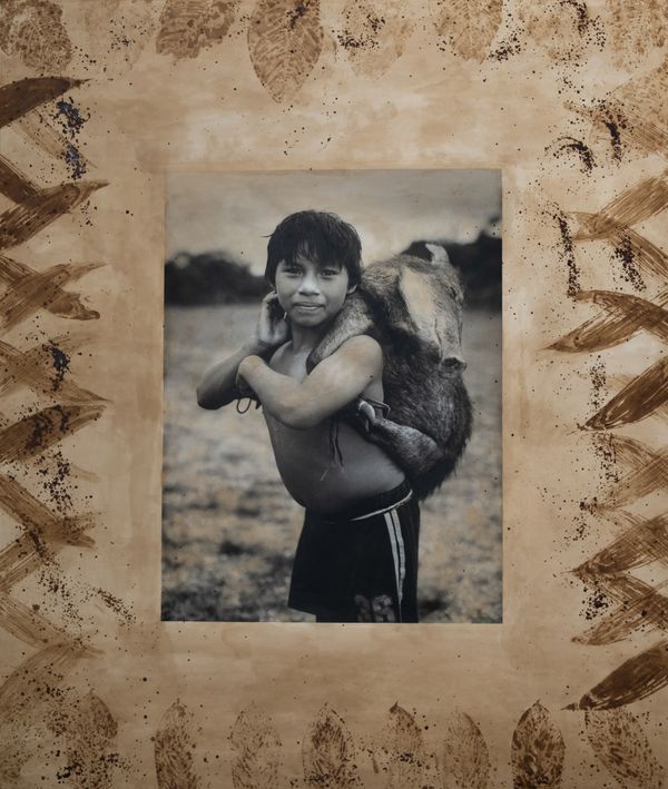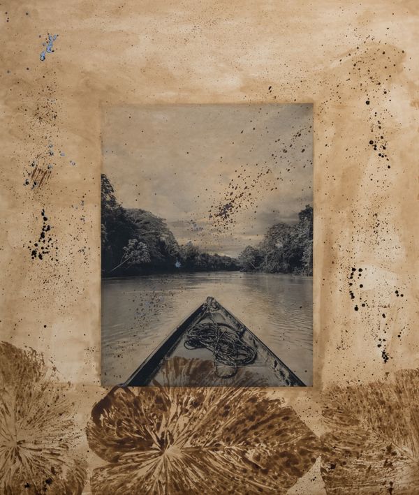 This photo essay seeks to create a representation of the impact of oil exploitation on indigenous communities in the Ecuadorian Amazon. The photos in the series are printed on cotton paper in large format and combine images of the daily life of the Waorani peoples with crude-oil marks made with a large variety of leaves from the Amazon rainforest.