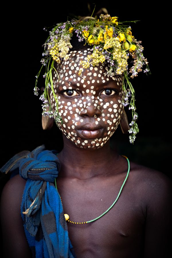 The Omo Valley in Ethiopia is a hub of ethnic diversity, home to indigenous tribes like the Suri, whose traditions remain untouched by colonization. Each portrait captures their vibrant designs, using natural light to evoke a sense of harmony and balance.
