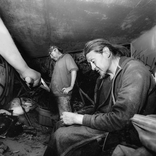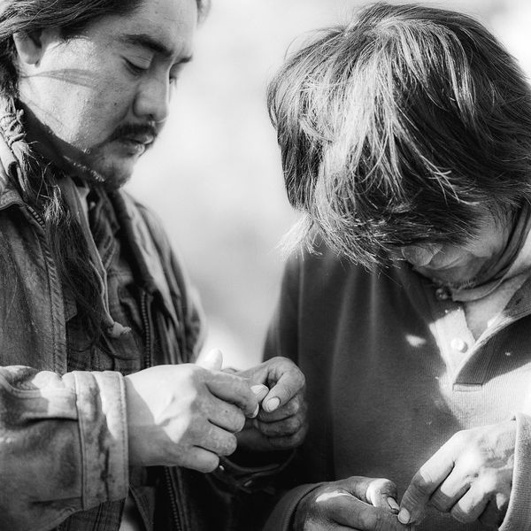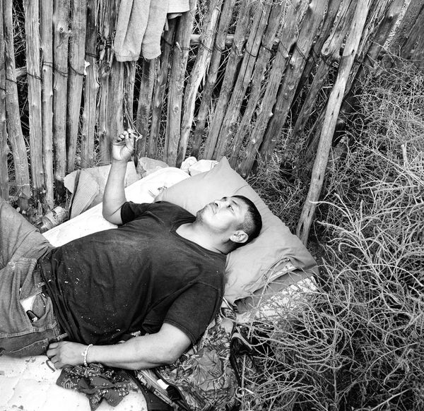 Aaron got the nickname Pillar for his leadership and protection regarding many travelers, drifters, and people without houses. He cooked for people, provided shelter for them, helped some find work, and brought relief to many. Aaron has a home and family in (Santo Domingo) Kewa Pueblo but chose to live outside because of his experiences at Camp Tule in California where he got to live his native beliefs and traditions in a deeper way. I met Aaron one day outside an Allsups gas station and convenience store. I sat at this particular Allsups for hours at a time, multiple days a week, and introduced myself to all the people that came by as well as the workers. I became part of the community through this gas station that is near my home, and it was Aaron who transformed me. Together, Aaron and I started making a visual record of his life, along with his younger brother Russell, and other men who lived with Aaron and wanted to participate in sharing a part of themselves without fear of shame or judgment.