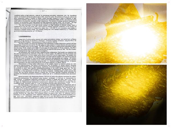 My father was a plasma torch operator. Many of my relatives were scientists and engineers, some of them working directly in the space sector. Among them was my father, whose work belonged to the field of experimental physics: he tested materials for spacecraft hulls using a plasma torch. A plasma torch is an installation in which gas is converted into a plasma state to produce a stream of extremely high temperature. This stream is directed at material samples while parameters are recorded and measurements of wear and structural change are carried out.