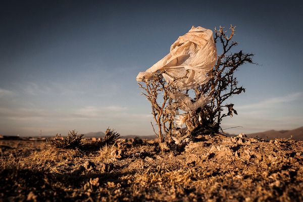 Plastic Trees series was made to call for the attention on this problem, focusing on the spreading of the plastic bags on the Bolivian Altiplano, where millions of bags travel with the wind until they got entangled in native bushes, damaging the beautiful landscapes.